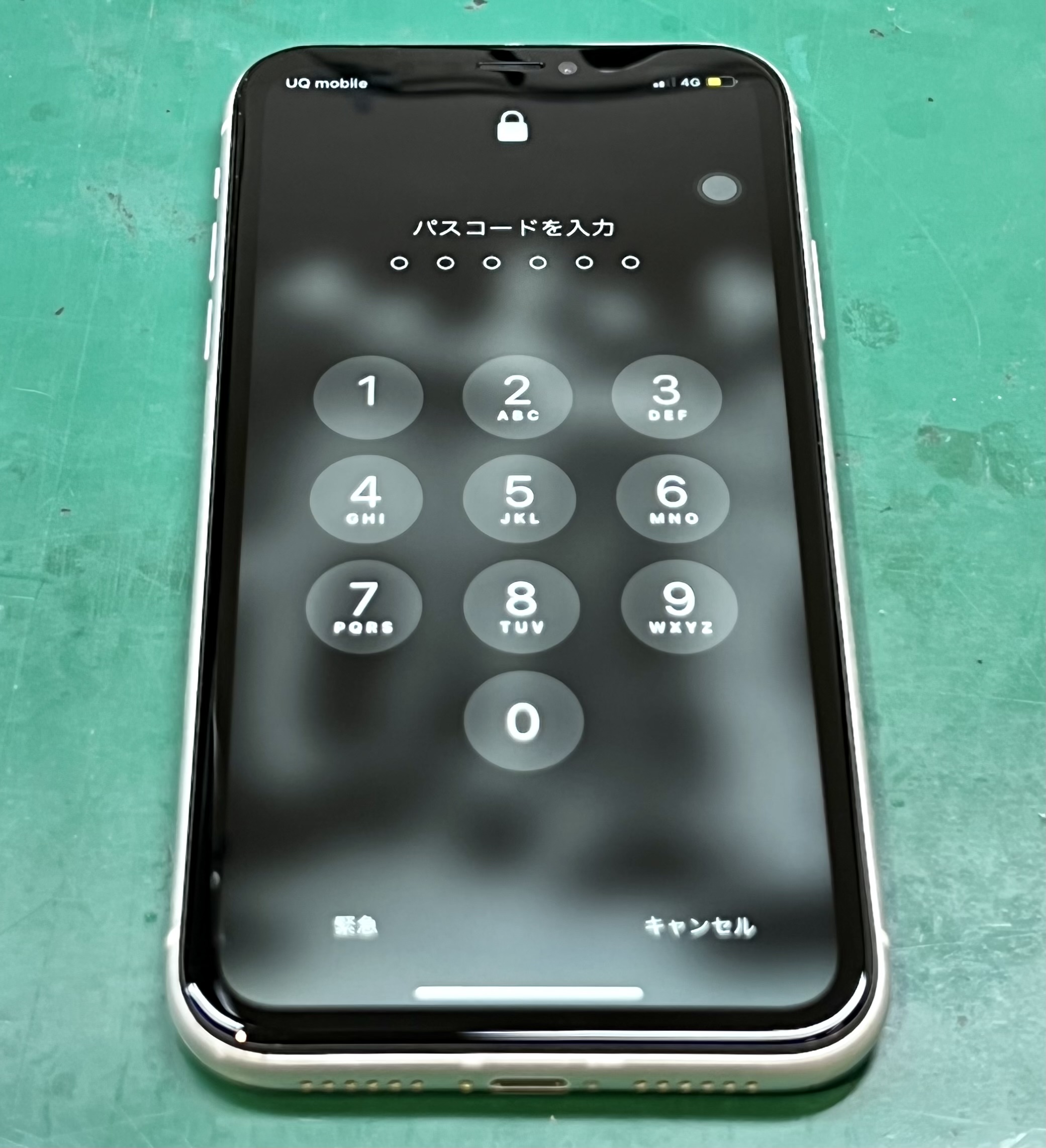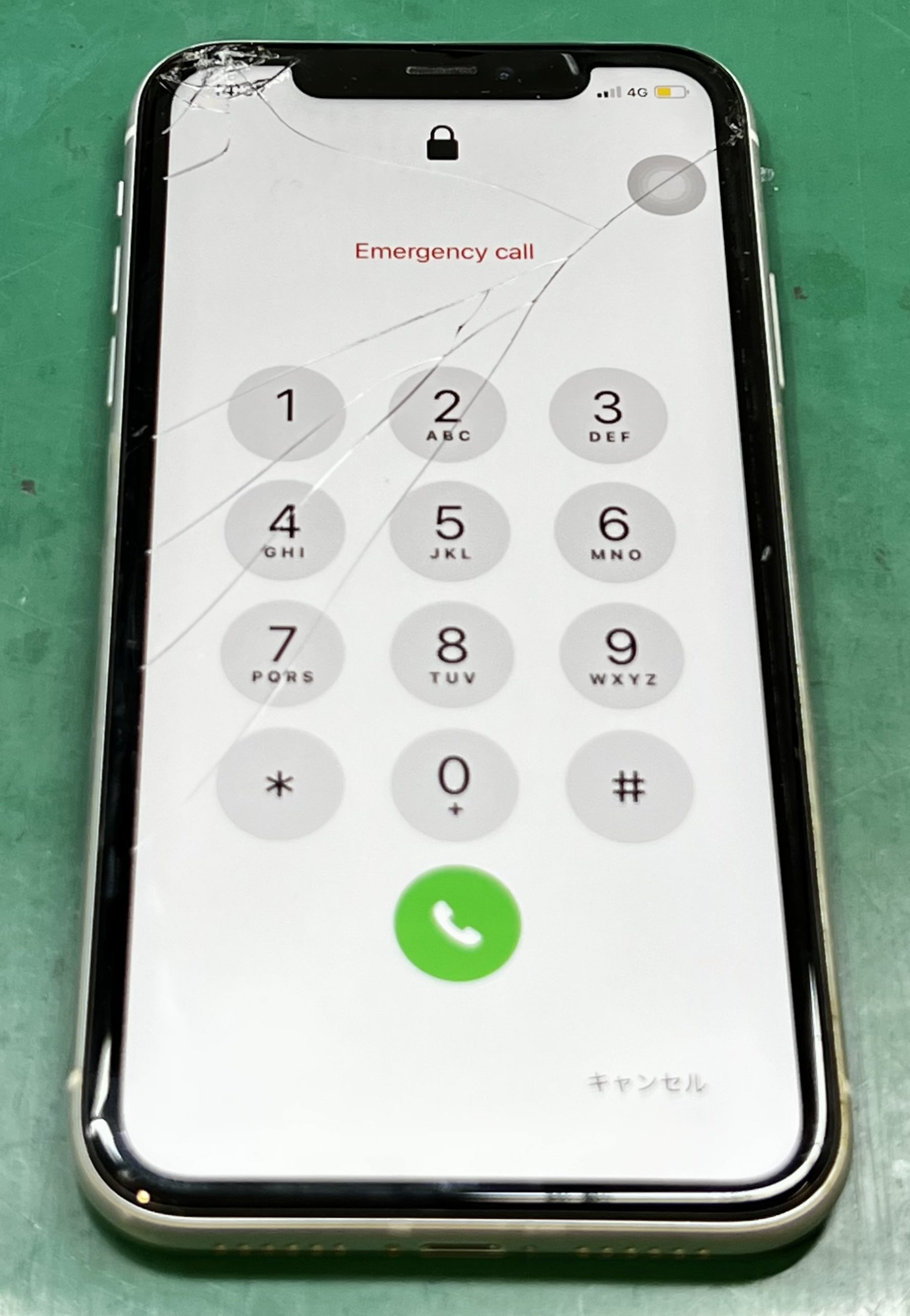 キーパッドの1/4/7付近と左上の割れている部分のタッチ反応が……。