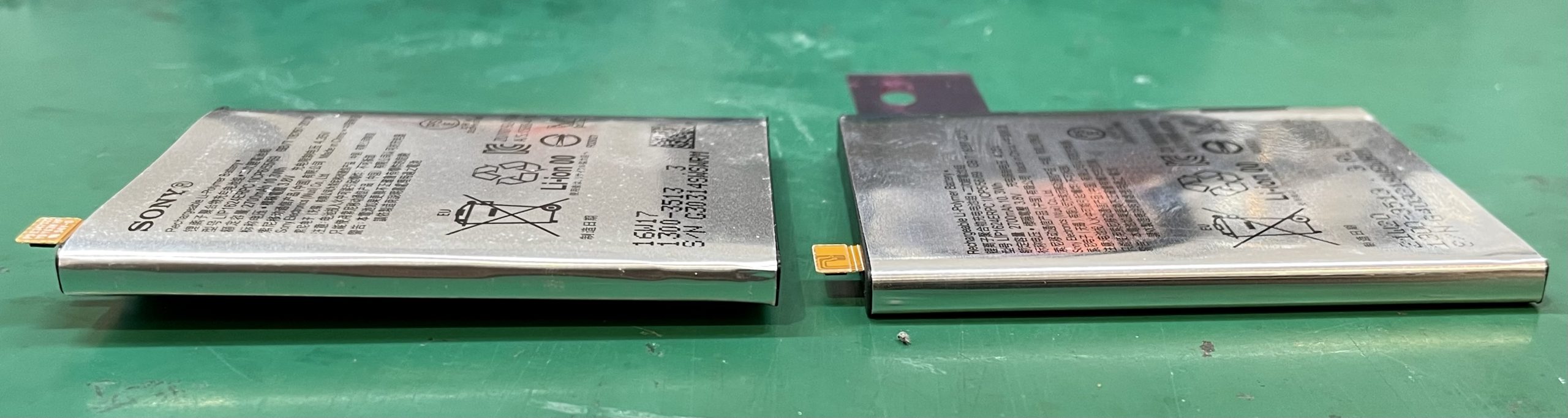取り外したバッテリーと新品バッテリーの比較。
